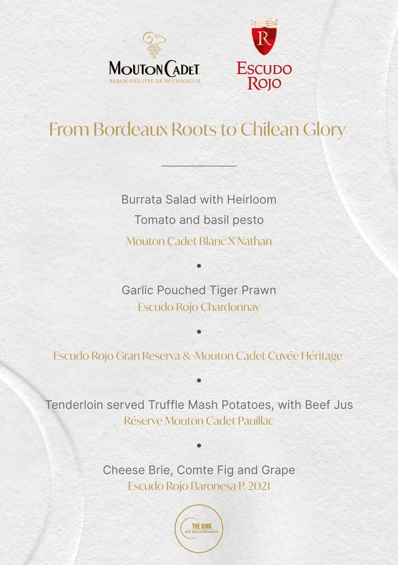 於海景環繞下享用融合地中海風味的佳餚。將呈獻來自法國波爾多與智利 Maipo 山谷的精選葡萄酒,展現法國釀酒工藝與智利風土的完美結合。晚宴由 Baron Philippe de Rothschild品牌大使 Martin Ginoux 親臨主持,帶領賓客深入探索每一款佳釀背後的故事與風土魅力。