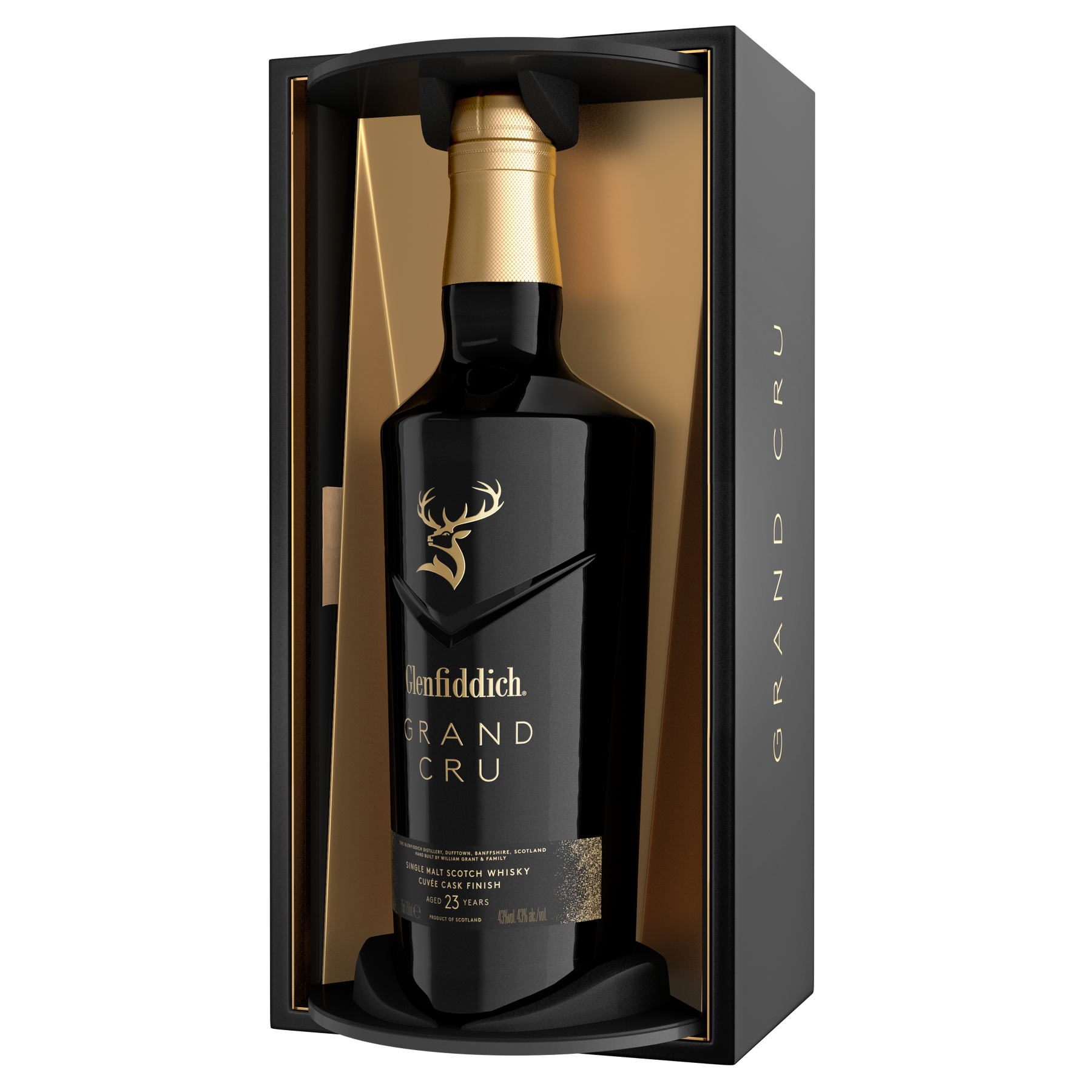 Glenfiddich Grand Cru 23 Year Old is a sinful romance between the rich, decadent flavors of Glenfiddich single malt Scotch whisky and the vibrant, seductive notes found in the world’s best vintage sparkling wines. On the palate, rich vanilla, sweet brioche, sandalwood, pear sorbet and white grape build a beautiful harmony of flavors; enhanced by a long, opulent finish for an extraordinary experience, to be shared and remembered. After developing rich and intense flavor through a long, 23-year maturation in American and European oak casks; every drop of Grand Cru then spends an additional 6 months in French cuvée casks, which impart new layers of decadence, offering a myriad of aromas from apple blossom to candied lemon and freshly baked bread. Best enjoyed neat, on the rocks, with a splash of water, or with club soda to expand the flavor.